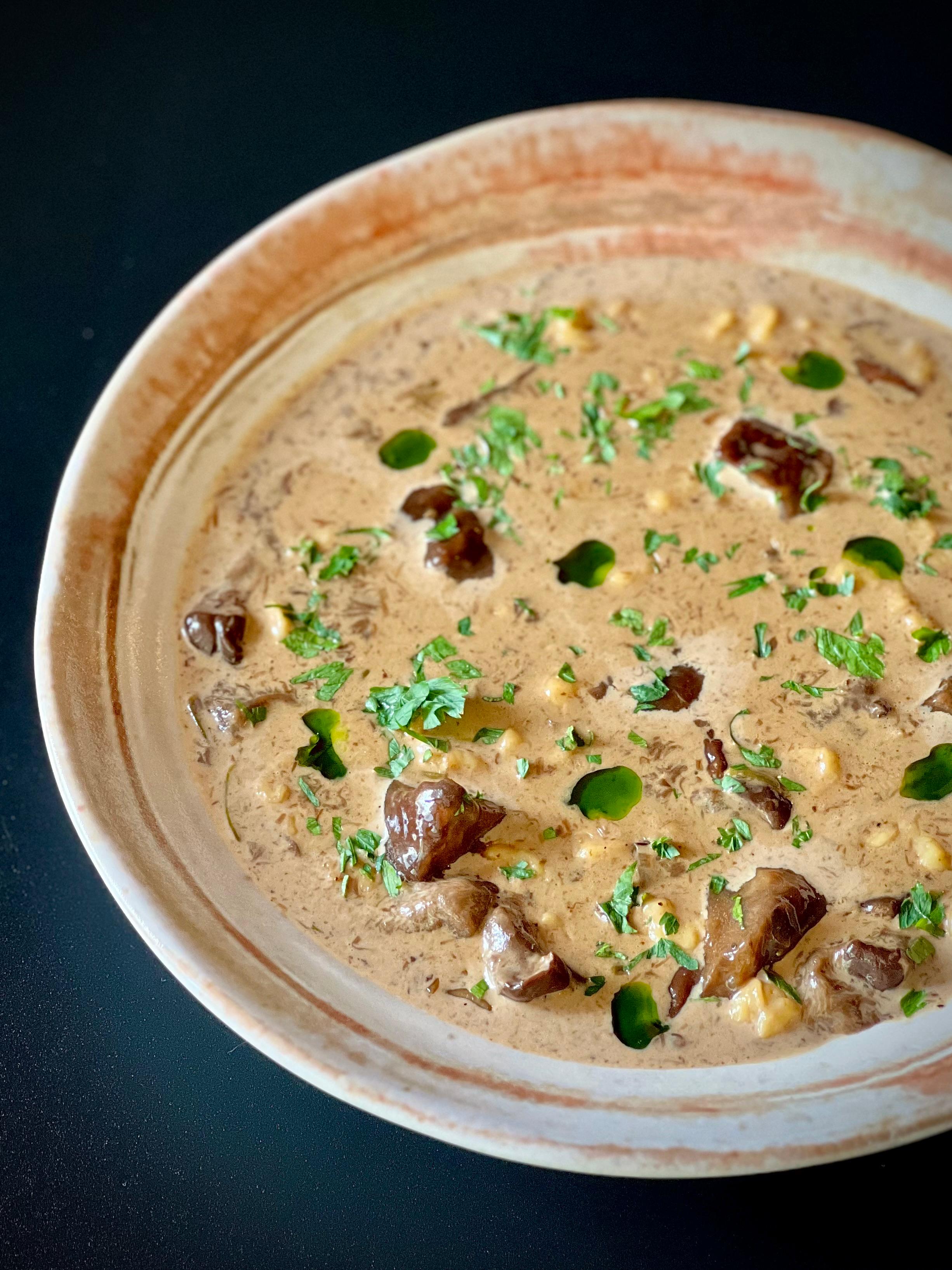 Gnocchi z duszonymi podgrzybkami w śmietanie z rozmarynem, pastą truflową, koperkiem i Pecorino Romano