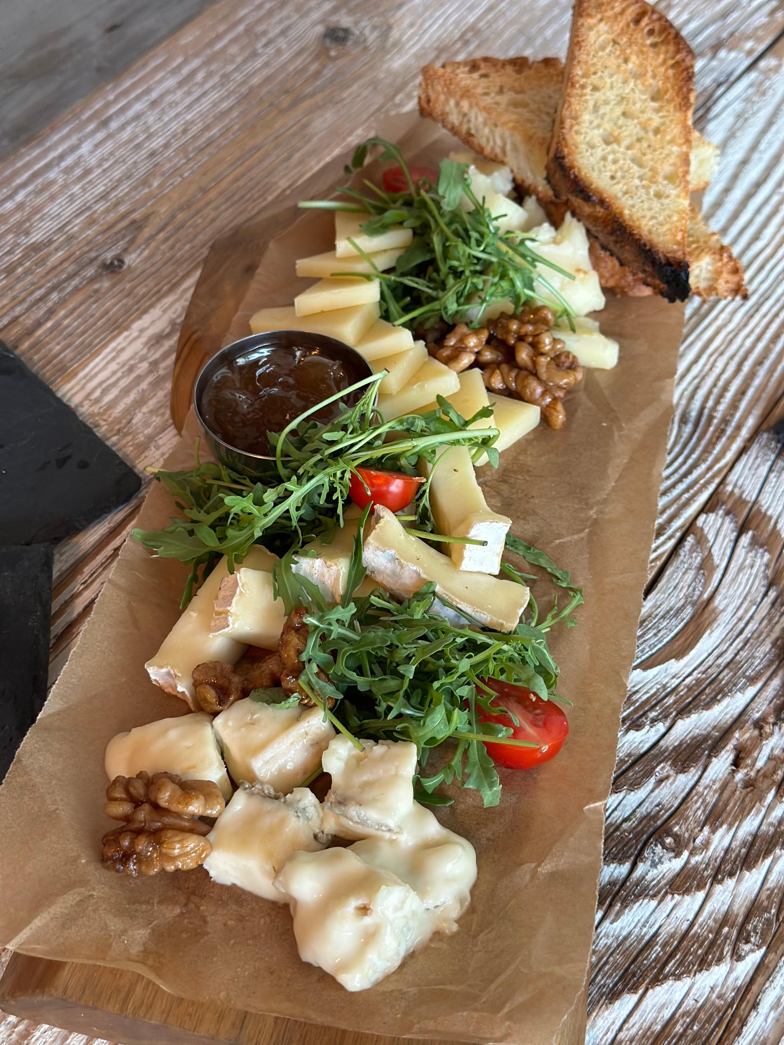 Taleggio, Gorgonzola, Grana Padano, Pecorino Romano, konfitura figowa, orzechy włoskie, winogrona, świeża figa, rukola i chrupiące grzanki z focacci